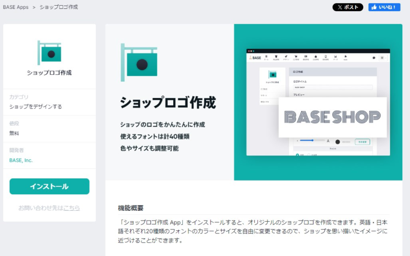 無料ECカートの「BASE」では、「ショップロゴ作成App」(無料)があります。