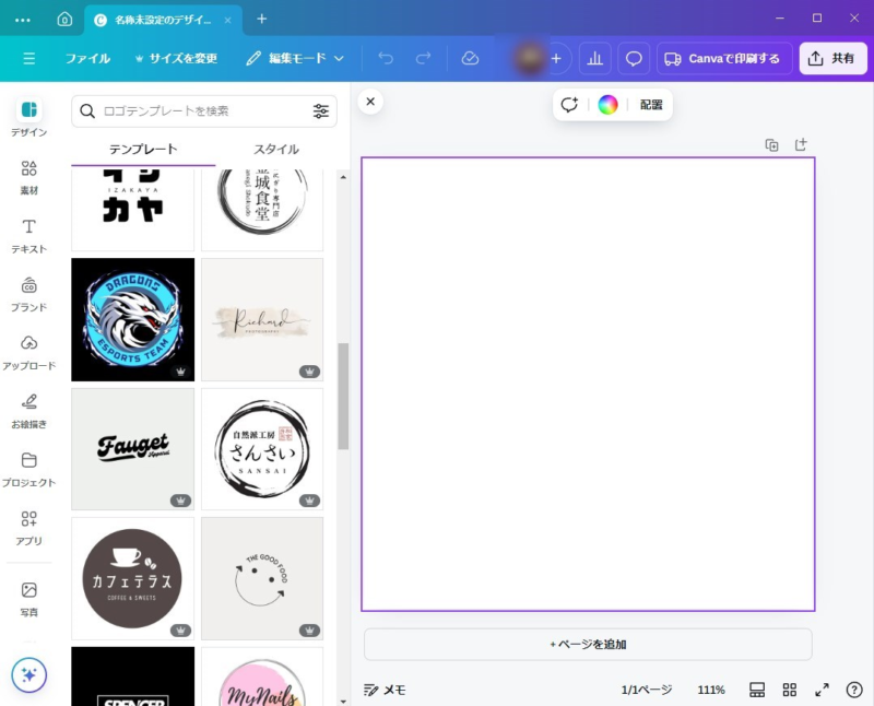 Canvaには、ロゴを作る機能があります。デザインテンプレートでは、すでに出来上がっているロゴの中からインスピレーションを得ながら、土台にして文言を入れ替えることで比較的簡単にロゴを作成できます。